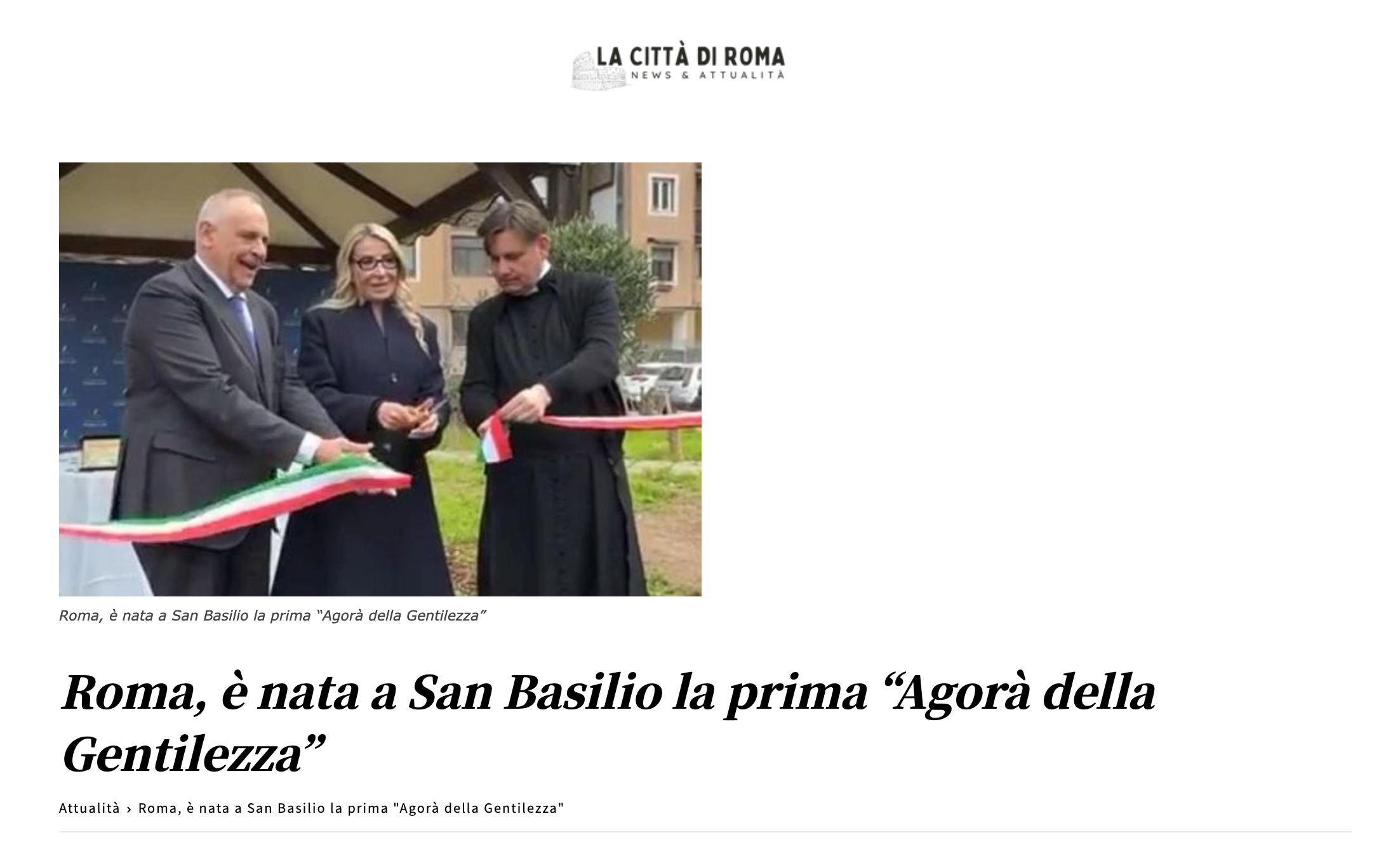 (AGI) – Roma, 6 mar. – Nasce a Roma la prima ‘Agora’ della Gentilezza’. L’iniziativa, promossa dalla Fondazione Guido Carli in collaborazione con il ministero dell’Interno, la prefettura di Roma e Don Antonio Coluccia, e’ stata inaugurata in piazza Aldo Bozzi, nel quartiere romano di San Basilio. Si tratta du uno spazio a lungo segnato da marginalita’ e degrado, ora restituito alla comunita’ come giardino aperto all’intero quartiere e concepito come presidio permanente di dialogo, legalita’ e partecipazione. “Trasformare una delle principali piazze di spaccio della capitale in un luogo curato, vivo, fruibile dagli abitanti di San Basilio e’ un’opera di rigenerazione sociale unica nel suo genere – ha dichiarato Romana Liuzzo, presidente della Fondazione Guido Carli – E’ solo una goccia in un oceano, ma ogni piccolo gesto di cura puo’ generarne altri. La gentilezza non e’ debolezza, e’ coraggio civile. Restituire bellezza a uno spazio significa restituire fiducia alle persone che lo vivono ogni giorno. Gli ulivi che abbiamo piantato sono simbolo di dialogo e pace: radici profonde e rami aperti, come deve essere la nostra idea di societa’”. “La gentilezza e’ un atto di coraggio civile, oggi non abbiamo solo restituito una piazza ai suoi abitanti, abbiamo affermato un principio: la bellezza e il rispetto possono diventare strumenti di rinascita. La donazione di questi ulivi ne e’ la dimostrazione concreta”, ha continuato. “Le periferie non chiedono compassione, chiedono presenza concreta delle istituzioni e della societa’ civile. Ogni spazio sottratto al degrado e’ uno spazio sottratto alla criminalita’. La gentilezza, qui, non e’ una parola astratta: e’ un atto di responsabilita’. Piantare un ulivo significa dire ai ragazzi che il loro futuro puo’ avere radici sane e che nessuno e’ destinato a rimanere ai margini”, ha sostenuto don Antonio Coluccia, sacerdote da anni sotto scorta per il suo impegno contro il narcotraffico e la criminalita’ organizzata. “Questo non e’ un momento qualunque, e’ un momento importante perche’ questa piazza bellissima da’ gentilezza, la gentilezza da’ decoro e il decoro da’ sicurezza”, ha affermato il prefetto di Roma, Lamberto Giannini. L’iniziativa ha portato alla riqualificazione di piazza Aldo Bozzi, con la piantumazione di sei ulivi, la messa a dimora di fiori, la pulizia dell’area verde e la sistemazione delle aiuole, accanto alla palestra della legalita’ fondata da don Antonio Coluccia. E’ stato inoltre donato un settimo ulivo simbolico dagli studenti dei Licei internazionali La Salle Villa Flaminia, presenti all’inaugurazione insieme alla dirigente scolastica Maria Chiara Sidori e ai ragazzi della palestra. L’Agora’ della Gentilezza rappresenta l’evoluzione del percorso avviato dalla Fondazione Guido Carli con i progetti Caivano 1 e Caivano 2. All’evento hanno partecipato anche la testimonial del progetto, Eleonora Daniele, rappresentanti del IV Municipio, del servizio giardini di Roma Capitale, Coldiretti e vivaio piante Faro, che hanno sostenuto la fornitura e la piantumazione degli ulivi.