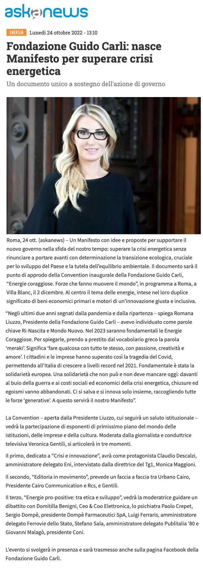 24 Ottobre 2022 / Energie Coraggiose, web / By Fondazione Guido Carli