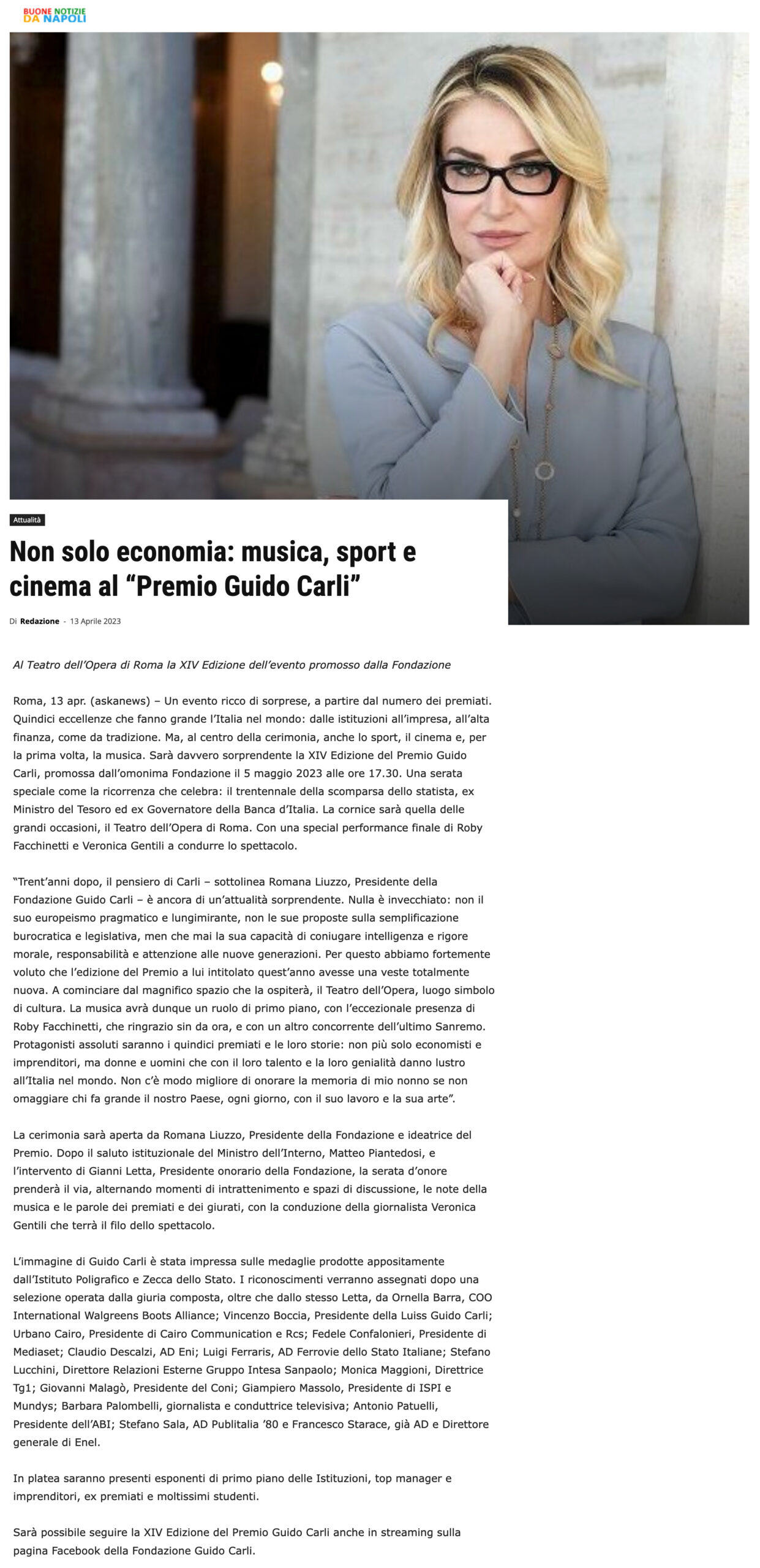 Buone Notizie da Napoli – Non solo economia: musica, sport e cinema al “Premio Guido Carli”
