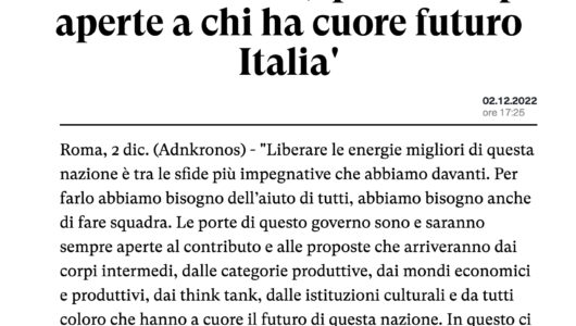 Lapresse – Governo, Meloni: “Fare squadra, nostre porte aperte a tutti”