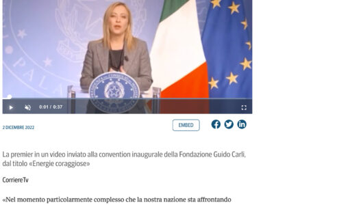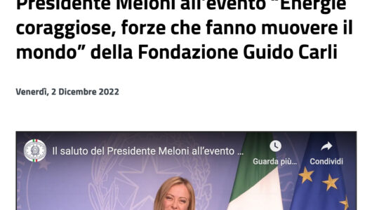 Governo Italiano – Il videomessaggio di saluto del Presidente Meloni all’evento “Energie coraggiose, forze che fanno muovere il mondo” della Fondazione Guido Carli