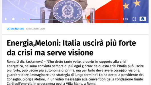 Giorgiameloni.it – Il videomessaggio di saluto del Presidente del Consiglio dei Ministri, Giorgia Meloni, all’evento “Energie coraggiose, forze che fanno muovere il mondo” della Fondazione Guido Carli. (video)