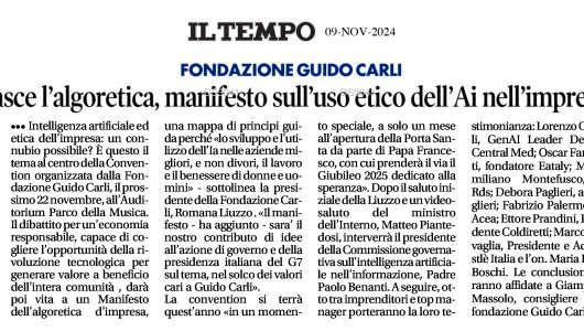 Il Tempo – Fondazione Guido Carli. Nasce l’algoretica, manifesto sull’uso etico dell’Ai nell’impresa