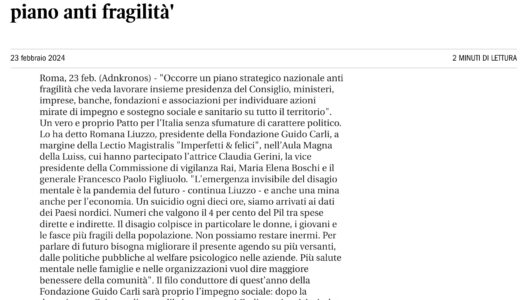 Il Tirreno – Disabilità: Liuzzo (Fondazione Guido Carli), ‘serve grande piano anti fragilità’