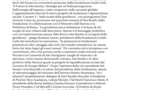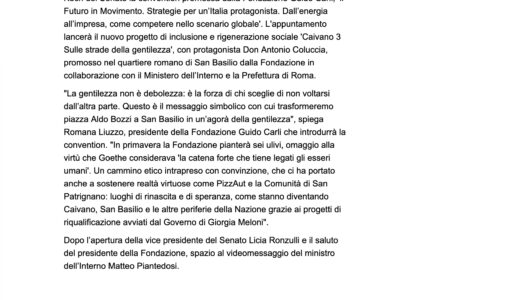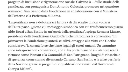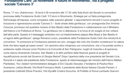 Affari Italiani – Fondazione Carli: 28 novembre ‘Il futuro in movimento’, via a progetto sociale ‘Caivano 3’