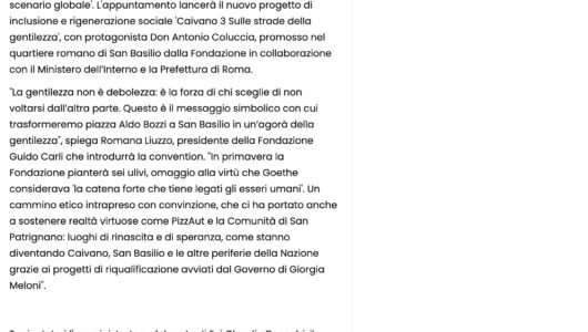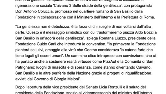 Il Tempo – Fondazione Carli: 28 novembre ‘Il futuro in movimento’, via a progetto sociale ‘Caivano 3’