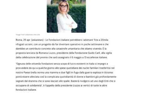 Askanews – Ucraina, Romana Liuzzo (F. Carli): Fondazioni “adottino” 20 mila rifugiati