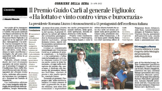 Corriere della Sera – Il Premio Carli al generale Figliuolo: “Ha lottato e vinto contro virus e burocrazia”