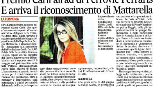 Il Messaggero – Premio Carli all’ad di Ferrovie Ferraris. E arriva il riconoscimento di Mattarella