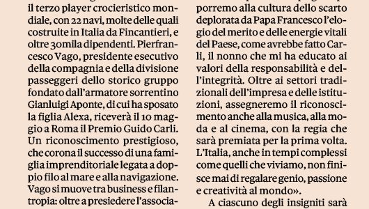 Corriere della Sera Roma – Economia, etica e lavoro Il Premio Carli compie 15 anni