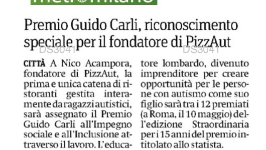 DIRE) Roma, 2 mag. - "Complimenti a Nico Acampora, fondatore di PizzAut, al quale sarà assegnato il Premio Guido CARLI all'Impegno sociale e all'Inclusione attraverso il lavoro. Un riconoscimento...