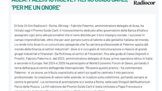 Affari Italiani – ACEA: il CEO Fabrizio Palermo riceve il Premio Guido Carli per il valore del suo percorso professionale