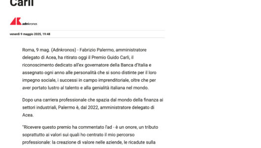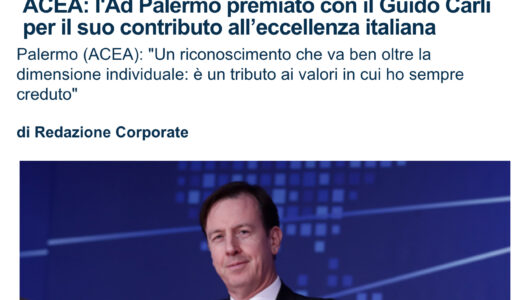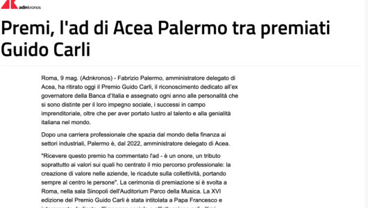 Il Mattino – Premi, l’ad di Acea Palermo tra premiati Guido Carli