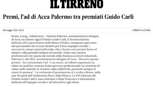 Il Tirreno – Premi, l’ad di Acea Palermo tra premiati Guido Carli