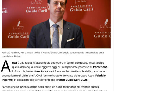 Quotidiano Nazionale – Acea e la transizione idrica: Fabrizio Palermo premiato al Guido Carli 2025