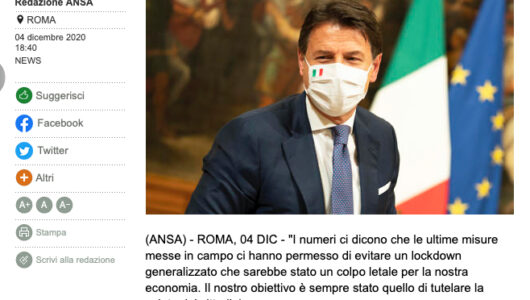 CORONAVIRUS: CONTE, ‘NON MOLLARE LA PRESA SUL NATALE PER EVITARE TERZA ONDATA’