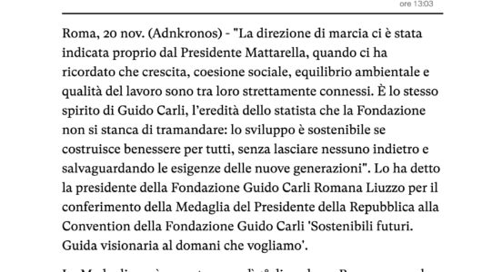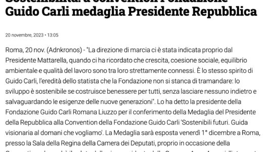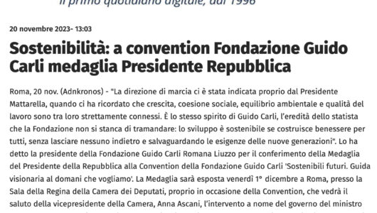 Adnkronos – SOSTENIBILITA’: A CONVENTION FONDAZIONE GUIDO CARLI MEDAGLIA PRESIDENTE REPUBBLICA