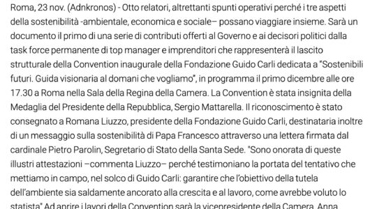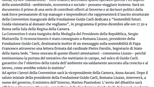 Agenzie, Sostenibili FuturiSostenibilità, da Fondazione G.Carli testo in 8 punti con top manager e imprenditori