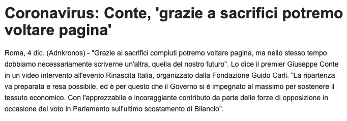 Coronavirus: Conte, ‘grazie a sacrifici potremo voltare pagina’