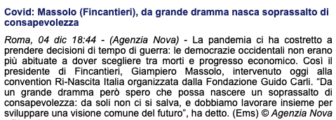 Covid: Massolo (Fincantieri), da grande dramma nasca soprassalto di consapevolezza