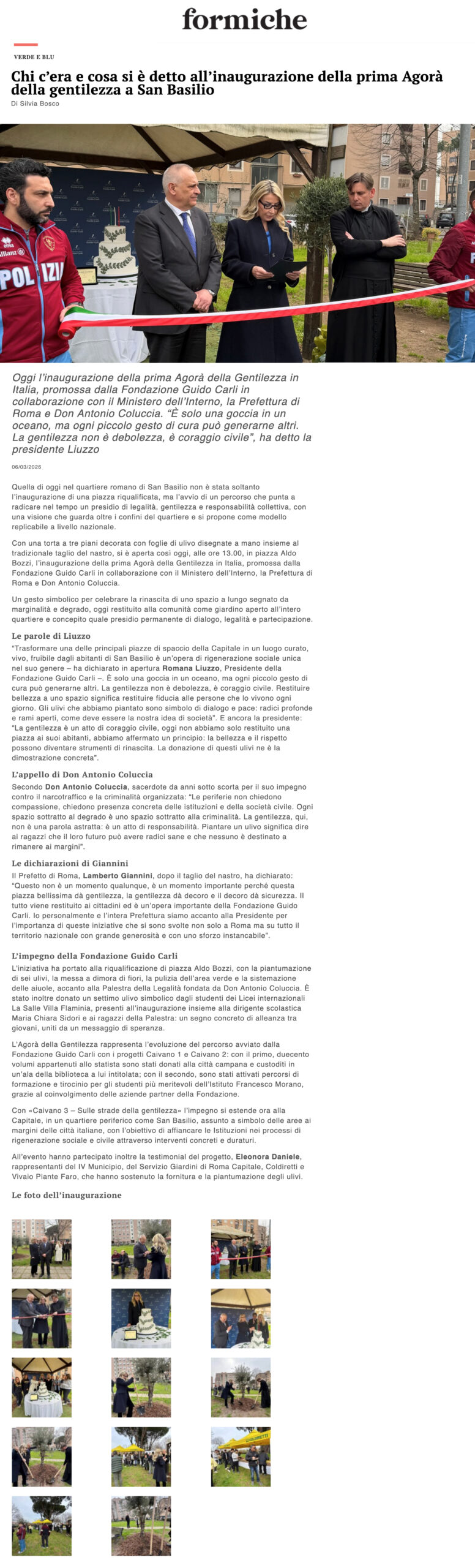 Formiche – Chi c’era e cosa si è detto all’inaugurazione della prima Agorà della gentilezza a San Basilio