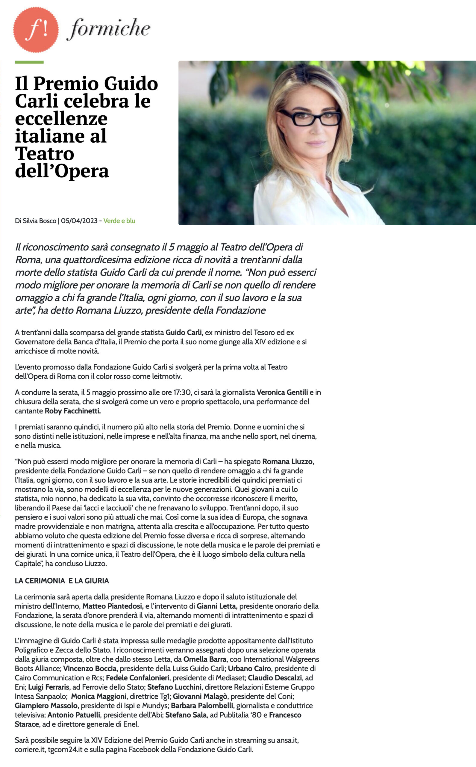 Formiche – Il Premio Guido Carli celebra le eccellenze italiane al Teatro dell’Opera