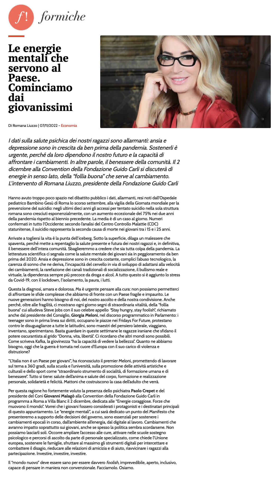 Formiche – Le energie mentali che servono al Paese. Cominciamo dai giovanissimi. Scrive Romana Liuzzo