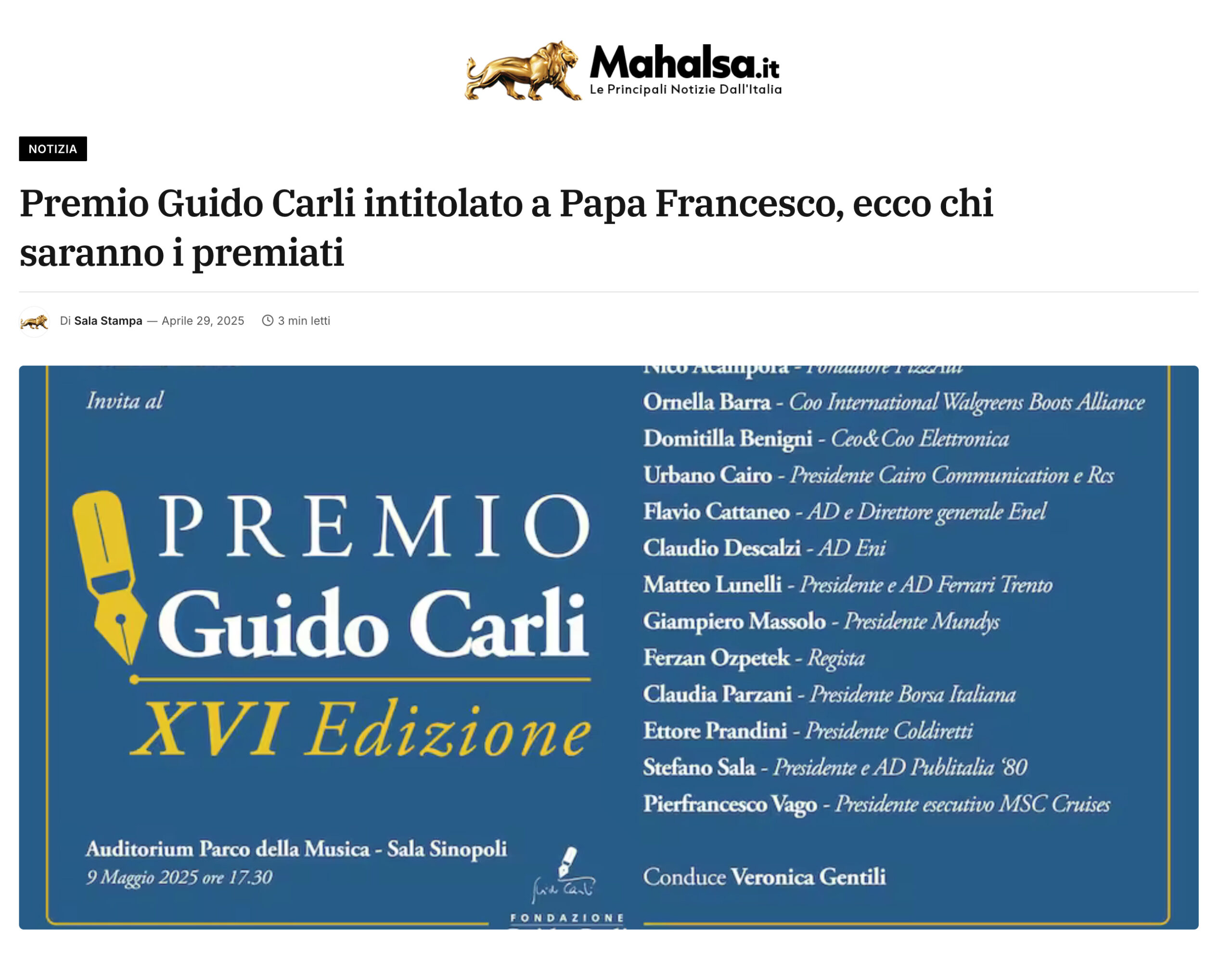 29 Aprile 2025 / Premio XVI Edizione, web / By Fondazione Guido Carli
