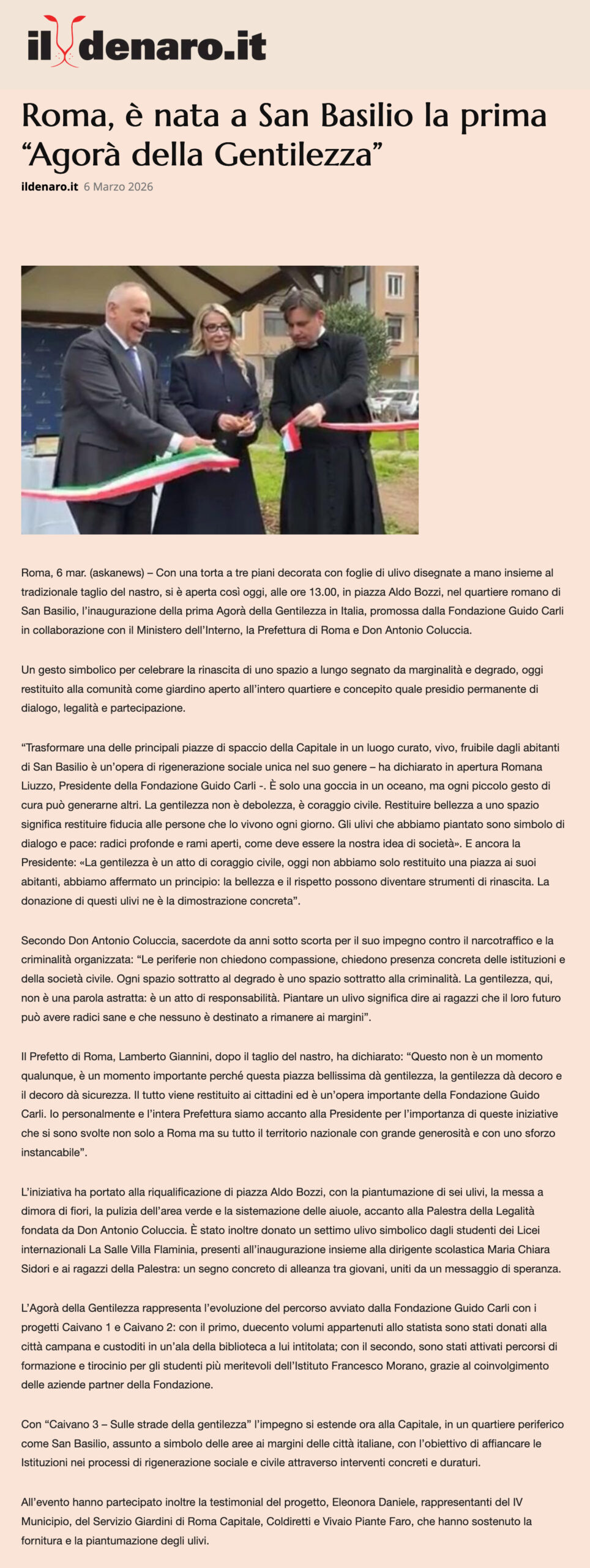 Il Denaro – Roma, è nata a San Basilio la prima “Agorà della Gentilezza”