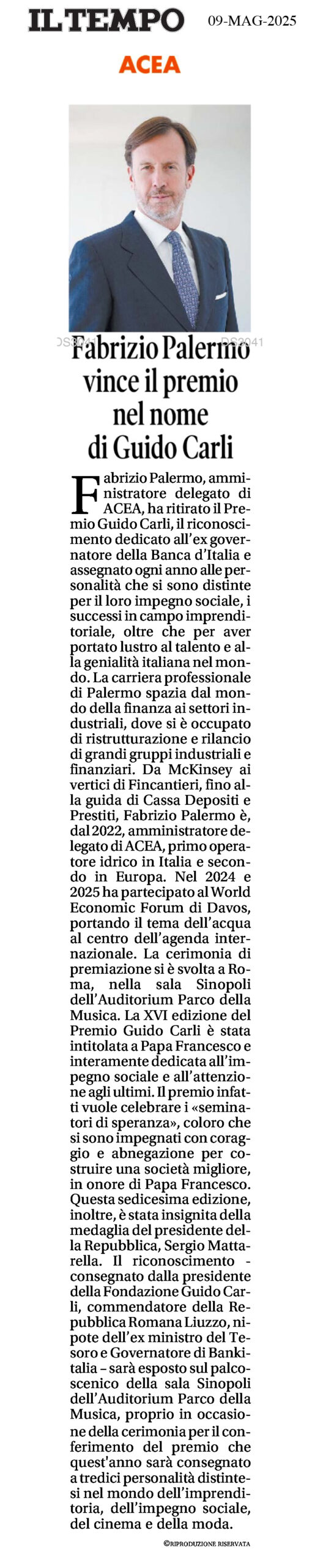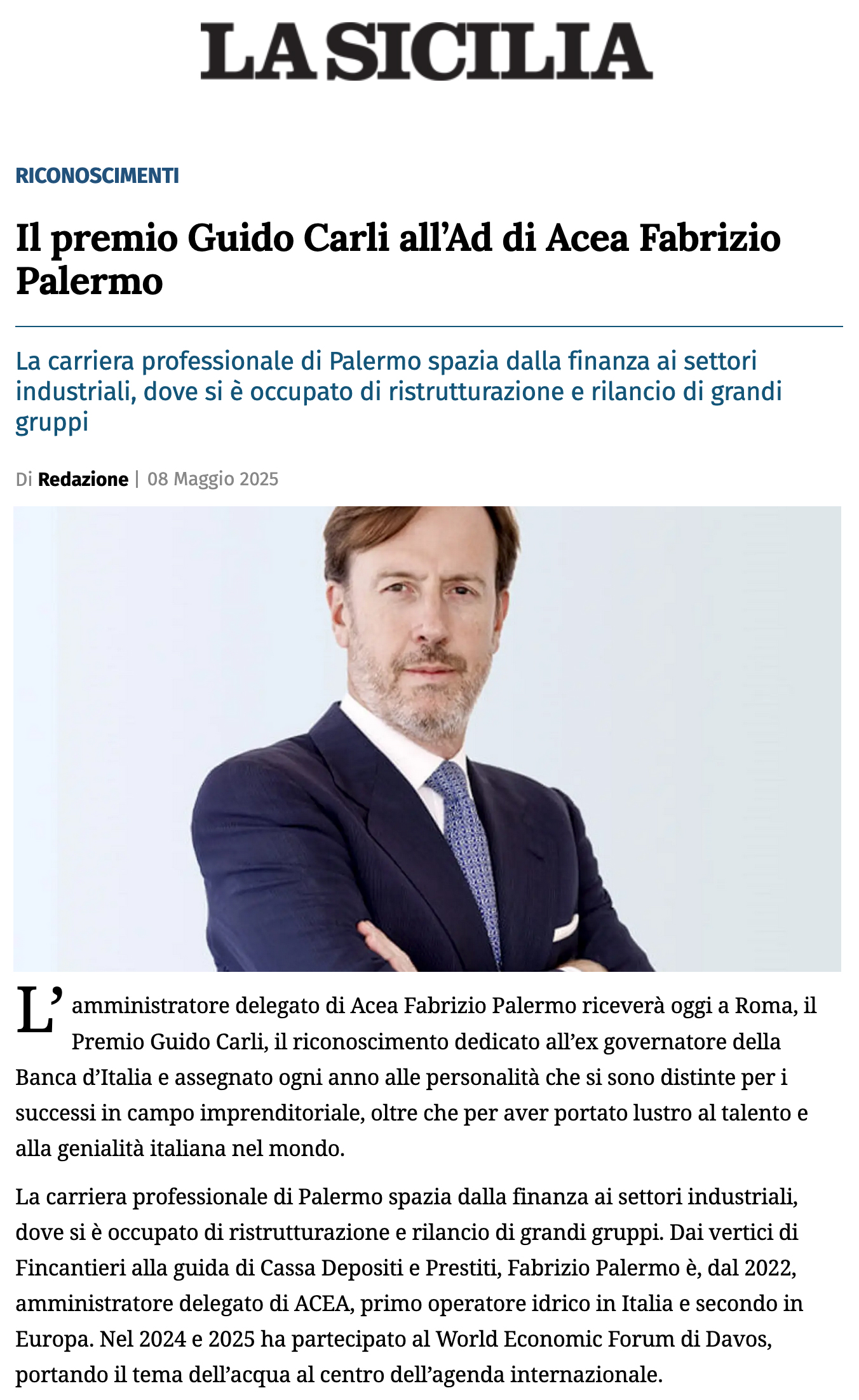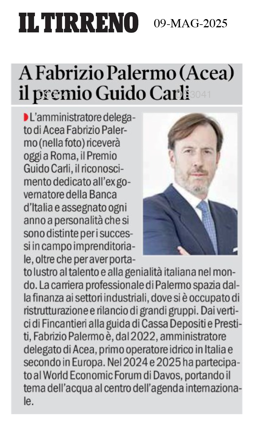Il Tirreno – A Fabrizio Palermo (Acea) il premio Guido Carli