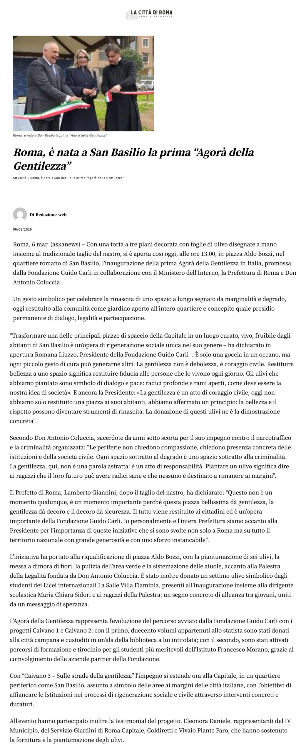 La Città di Roma – Roma, è nata a San Basilio la prima “Agorà della Gentilezza”