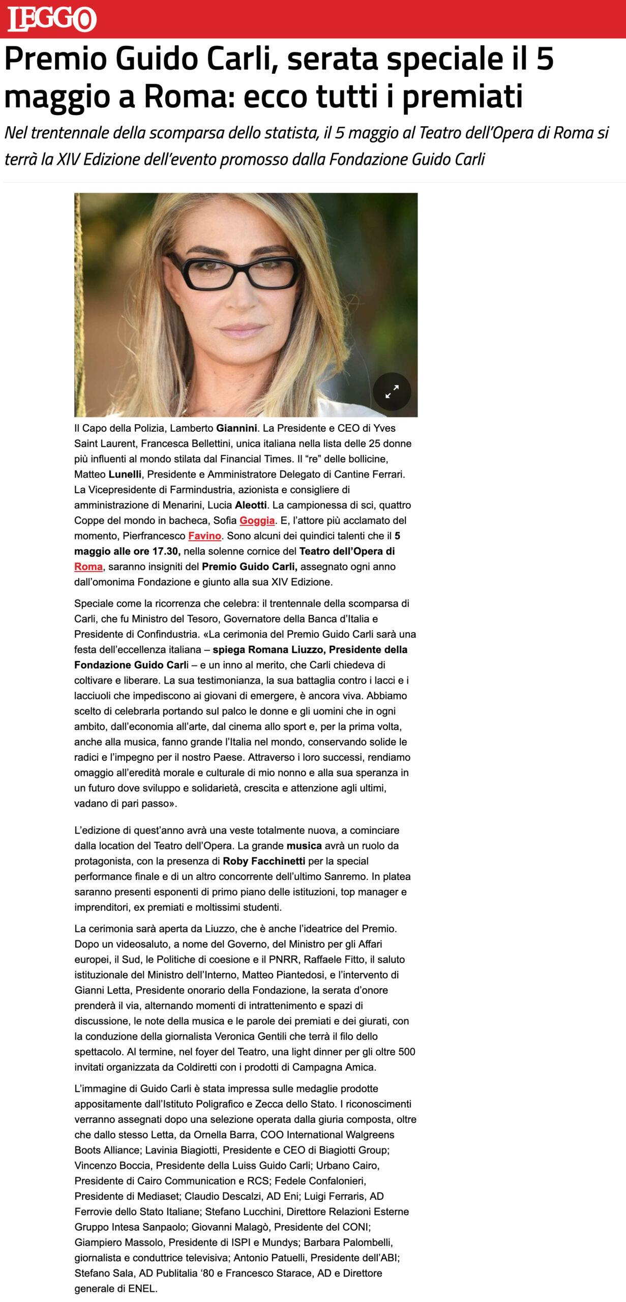Leggo – Premio Guido Carli, serata speciale il 5 maggio a Roma: ecco tutti i premiati