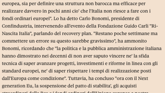 Recovery plan: Bonomi, persi sei mesi, ora non commettere errori